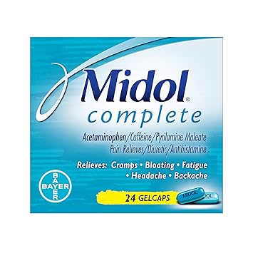 Amazon Com Midol Complete Menstrual Period Symptoms Relief Including Premenstrual Cramps Pain Headache And Bloating Gelcaps 24 Count Packaging May Vary Health Household
