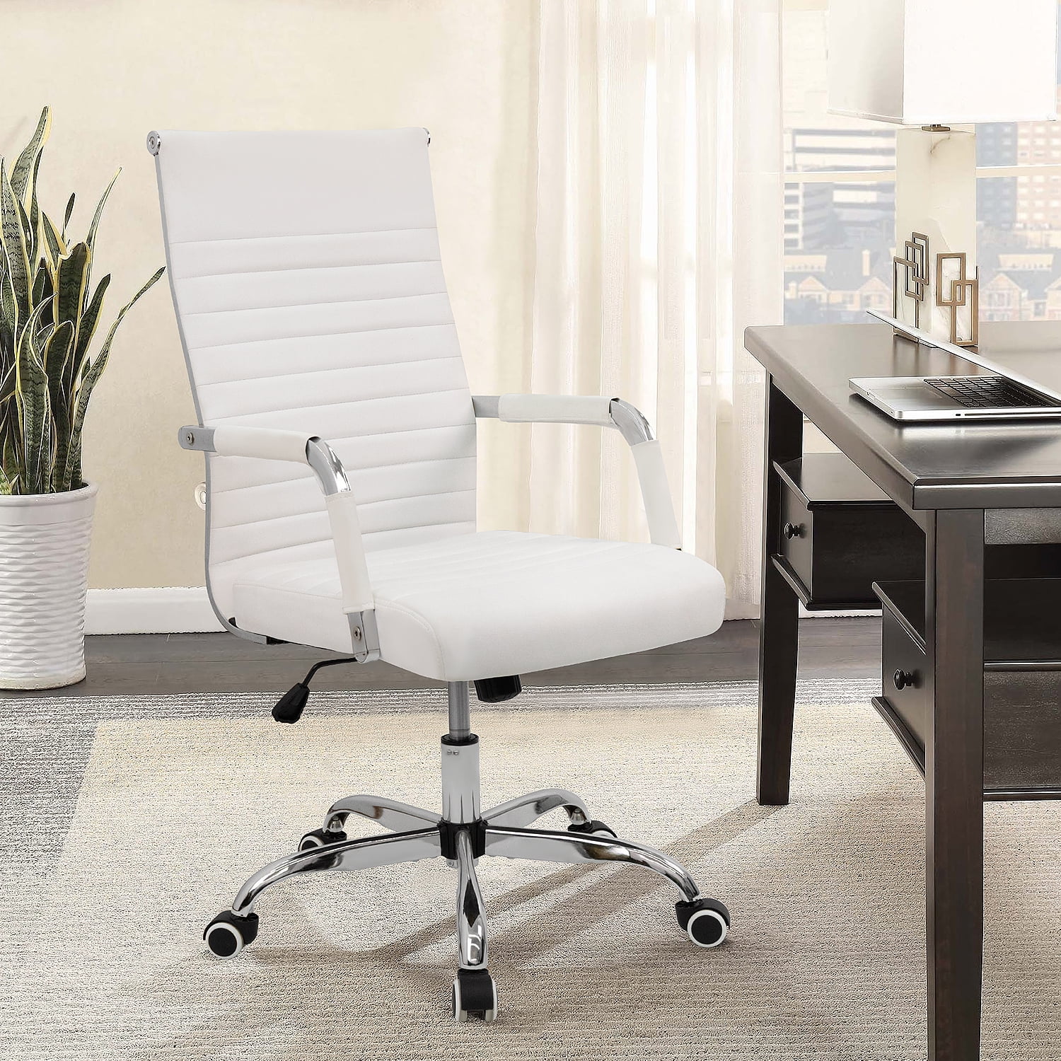 Lacoo Mid Back Adjustable Office Desk Chair Faux Leather Ribbed Task Chair With Armrest White Walmart Com